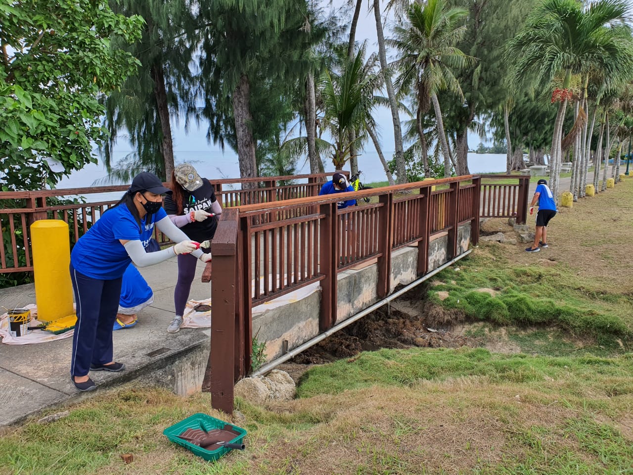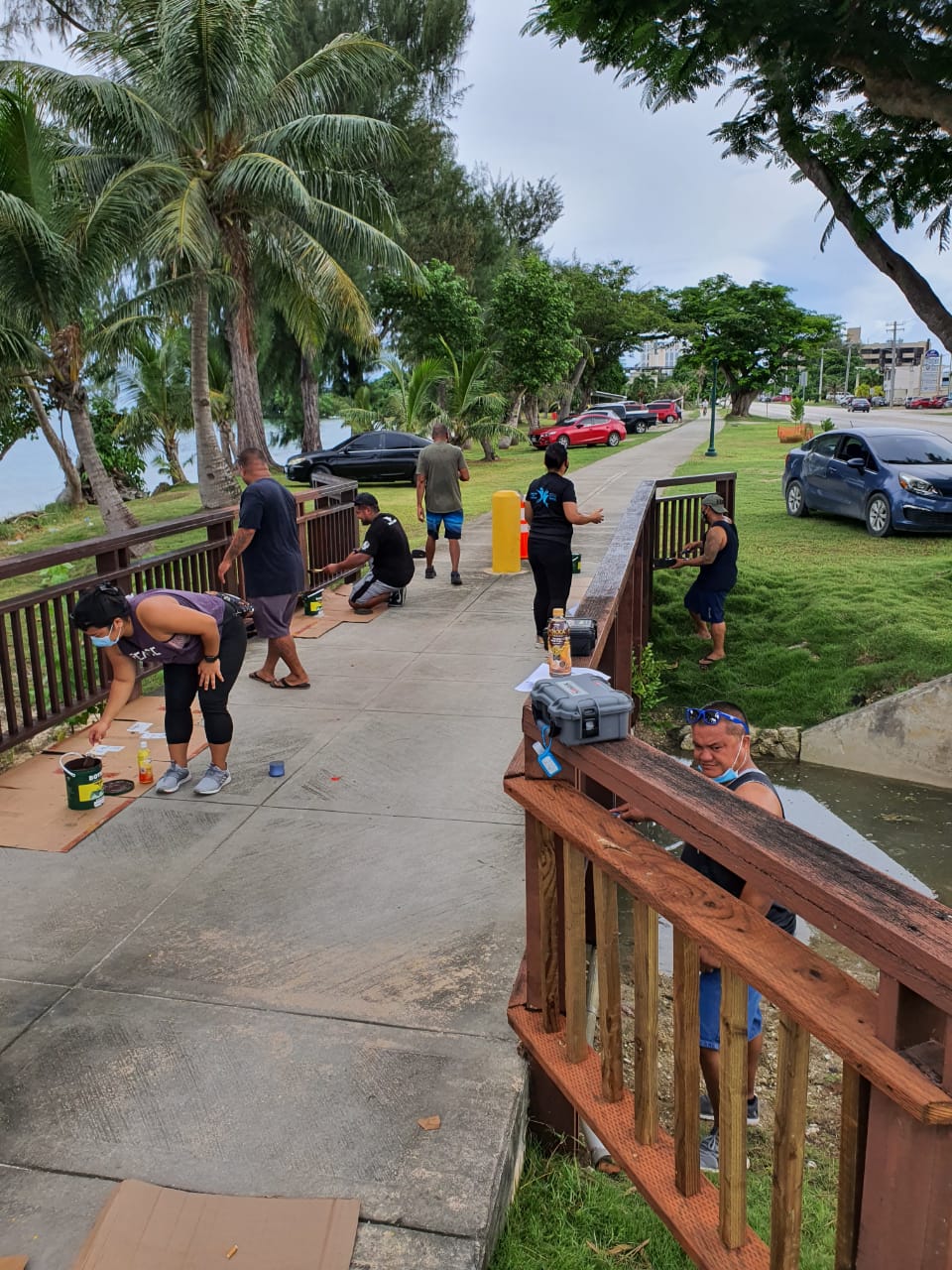 Tan Holdings/Tan Siu Lin Foundation adopted the Gov. Froilan C. Tenorio Beach Road Pathway, a well-used path for walking, running, and biking. This project was one of the first PPP projects in Saipan completed in 2020. The partners and their volunteers fixed and replaced the broken and missing railings and benches and cleaned and painted the entire length of the pathway. In addition, the Office of Grants Management, under Governor Torres, received grants to replace the lighting along the completed pathway.