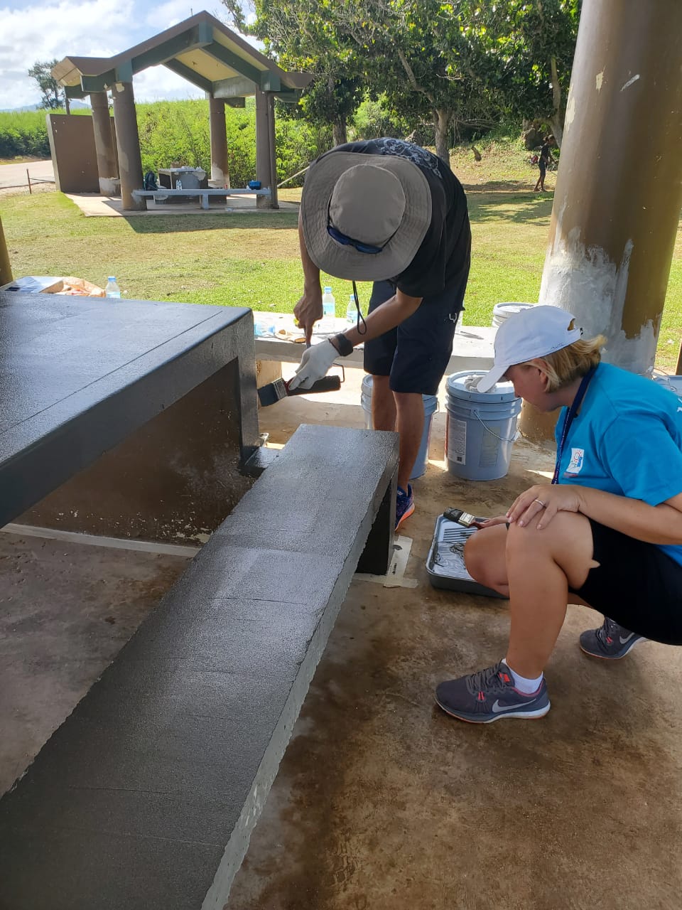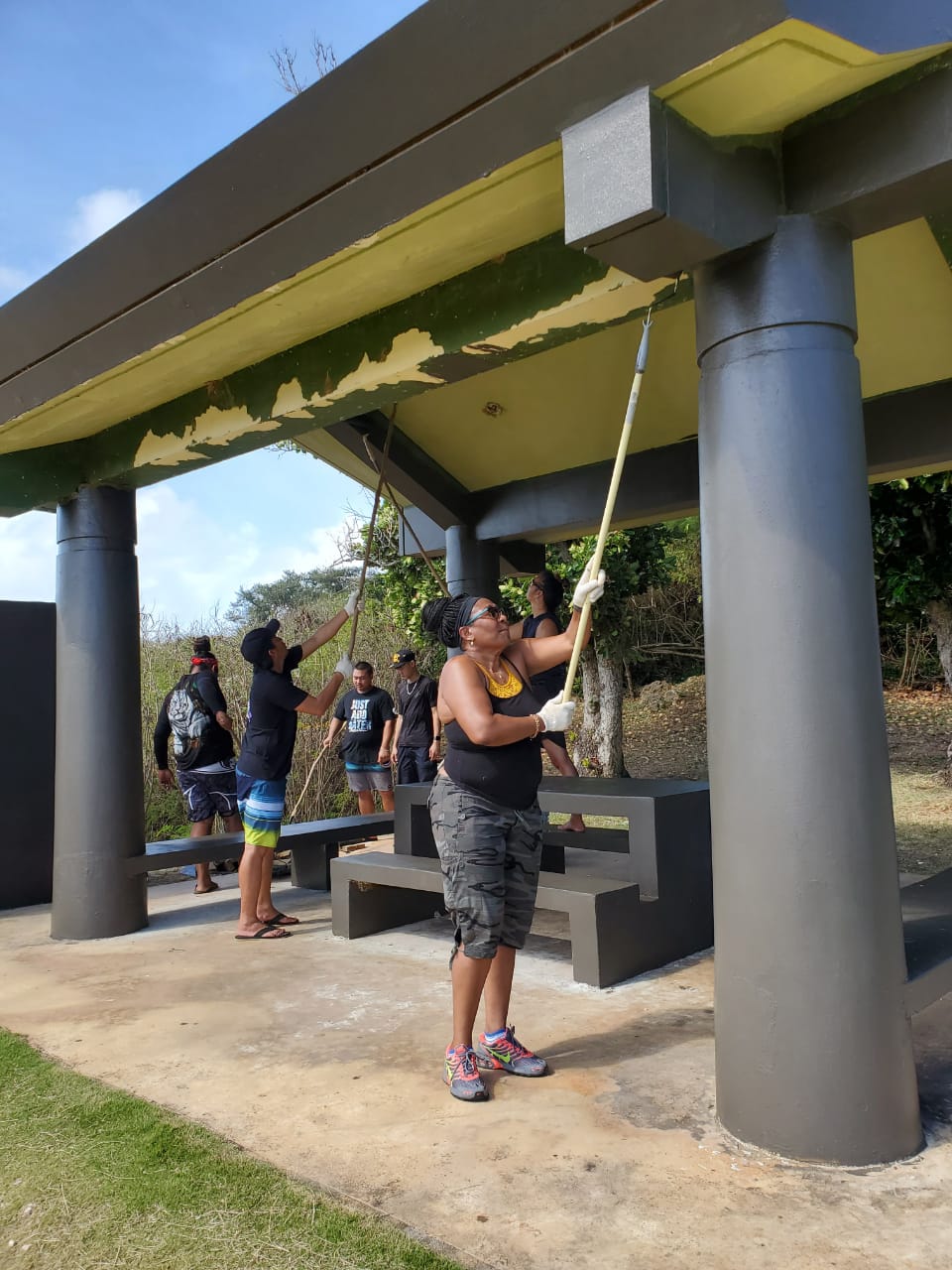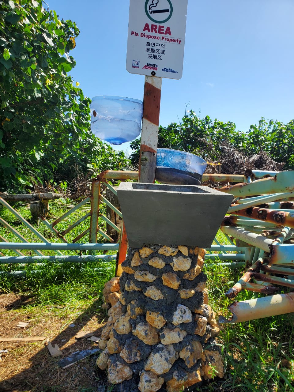 International Roller skates, Tasi & Ali's, DIVEWISH, Loco and Taco Dining Bar, and Marianas Lighthouse act jointly in cleaning up the Grotto site. The Grotto has been a very attractive site for tourists who visit Saipan. The organizations have worked together to repaint and clean the pavilions and curbs, create visible parking lanes, replaced the ashtrays generic foundation with a concrete base, added safety signs, and renovate the Grotto's bathroom (with a water system, bathroom doors, and cleaning).They will continue to work on the Grotto site and have listed upcoming projects to include cleaning up the curbs, add safety signs, renovate the Grotto's bathroom, and fill in the potholes in the parking lot and surrounding areas.